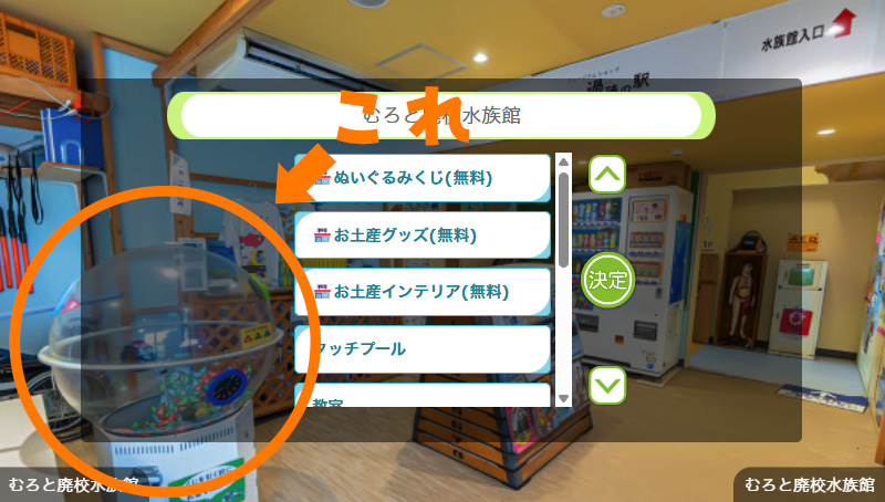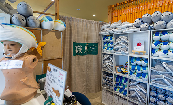このくじで当たるぬいぐるみの、ブリとサバは、むろと廃校水族館でしか手に入らないんです。